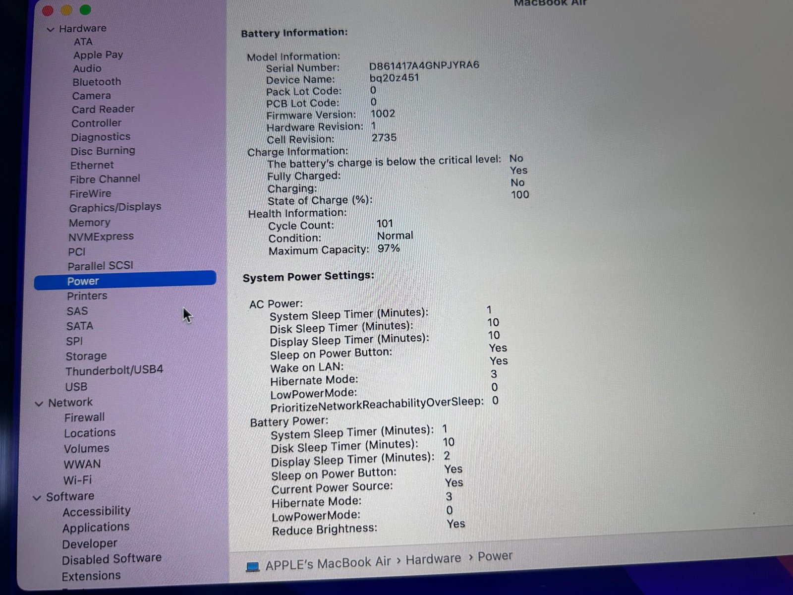 | Model | MacBook Air |